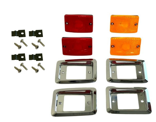 This kit includes all four marker light assemblies, lenses, mounting gaskets and hardware.