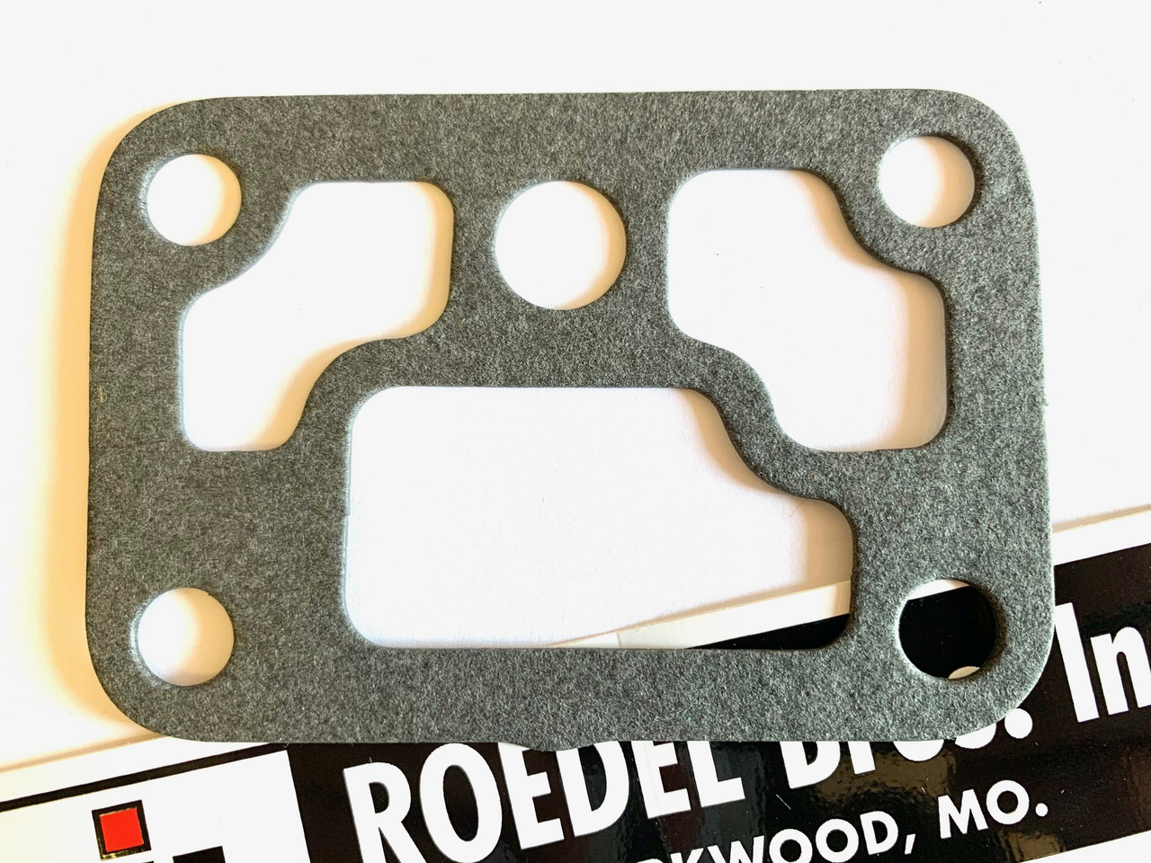 Oil filter housing adapter mounting gasket for 1976-80 Scout II, Traveler and Terra equipped with the Nissan SD-33 or SD-33T diesel engines.