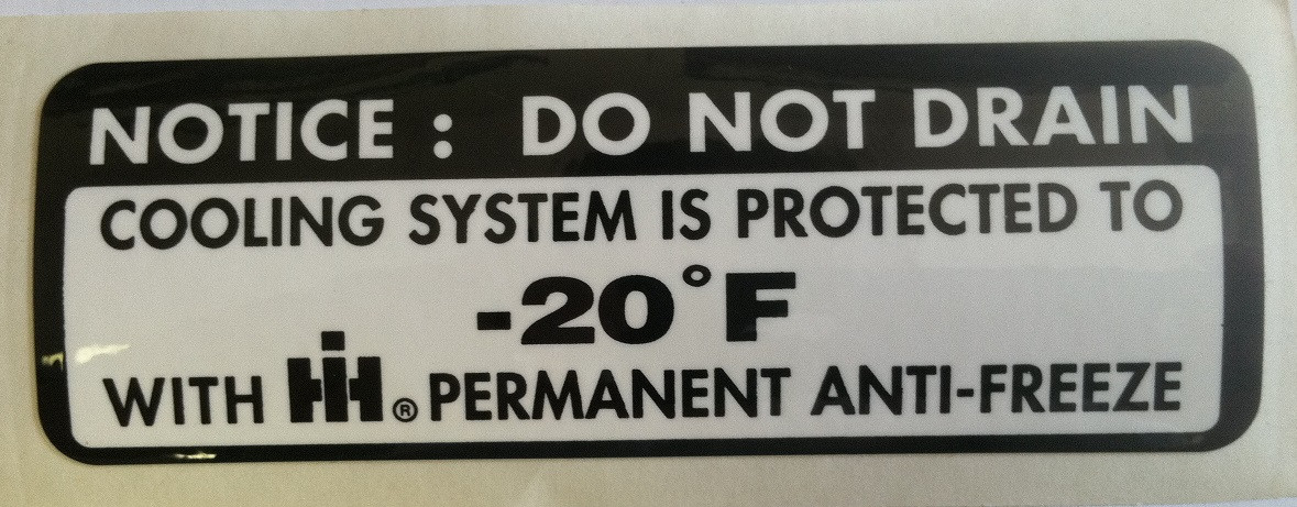 Loading... Please wait...High quality, restoration grade reproduction of the IH Anti-Freeze engine compartment decal.