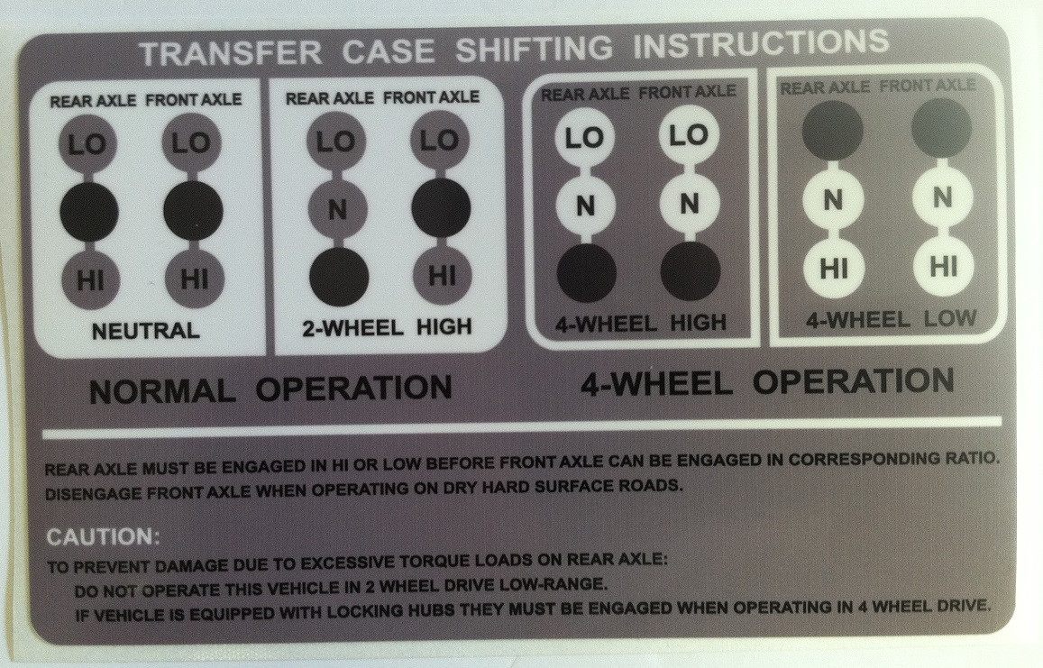 Scout 80, 800 transfer case shifting instructions decal.